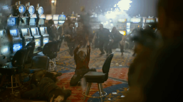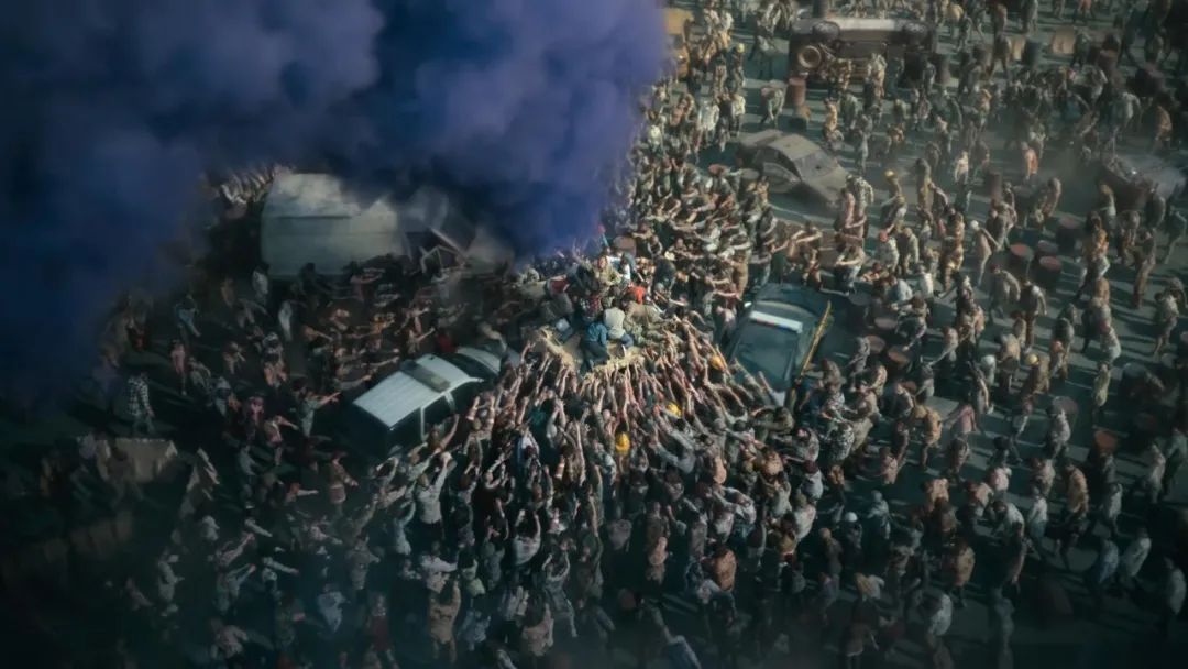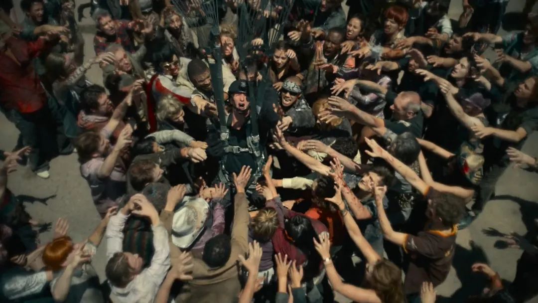 比如从丧尸母体入城到隔离区的建立,短短5分钟,扎导使用了大量的慢镜头,搭配和画面风格完全不搭的音乐,创造出了一场血浆横飞却又不失美感的视觉盛宴。