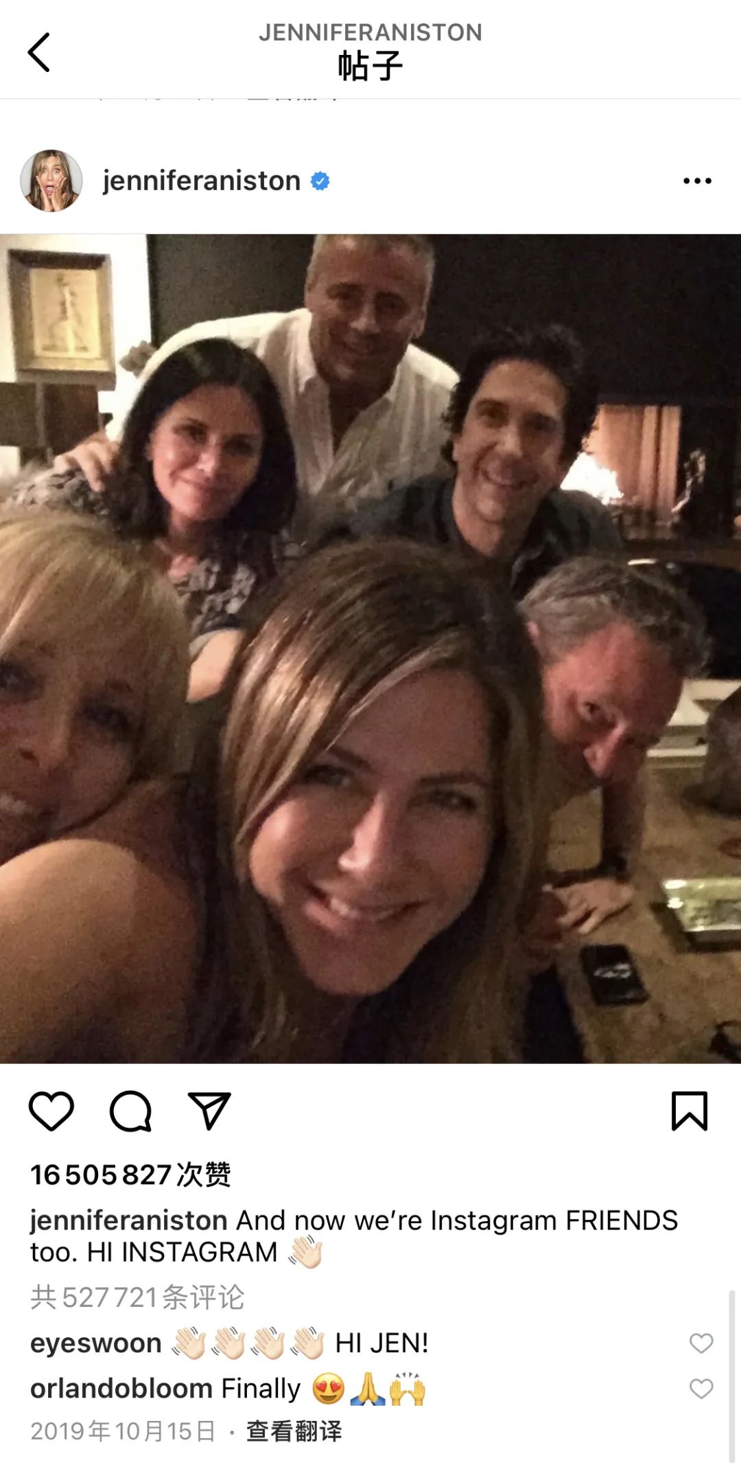 那年,jennife aniston开ins,发了一张糊到不行的照片,获得了一千六百多万个赞,我也不知道,这是不是ins上获赞最高的动态了,但这张照片,应该是停播之后,六个人在公众面前首次同框。
