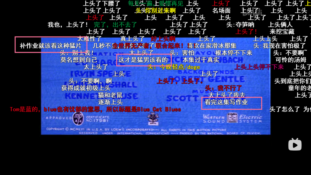 在b站最经典版本的《猫和老鼠》下,类似弹幕非常多。
