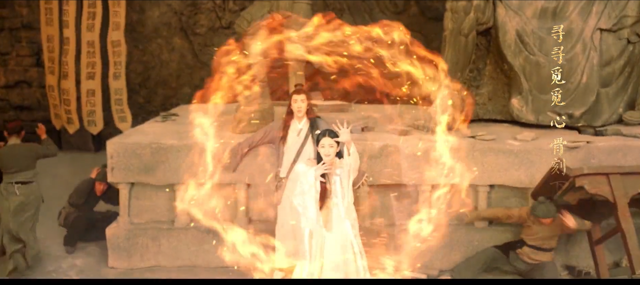 影片最后,阿竺灰飞烟灭于陈观怀中,本片的主题曲也伴随响起——“那抹烛火燃烧我、染红你,两世间两颗心交集”,走心的歌词,唱痛人心的声音,陪着剧情与画面,让很多人在这一刻忘记了自己刚看完的是一部打怪片。