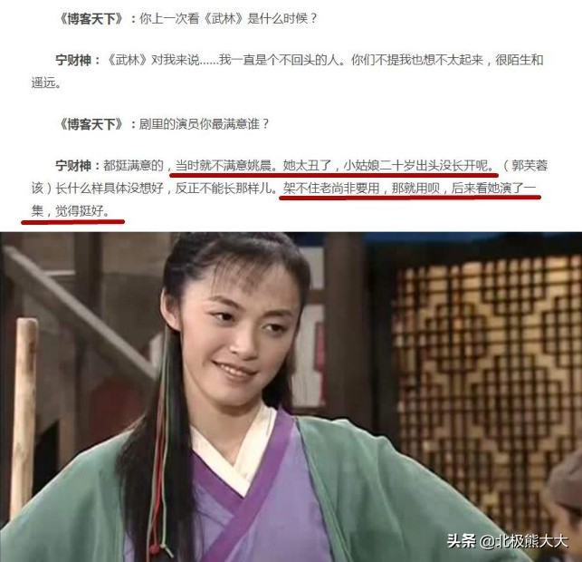 其实一开始,投资人和编剧宁财神,是不同意姚晨演“郭芙蓉”的,无奈拗不过导演尚敬,最终“被迫”同意。
