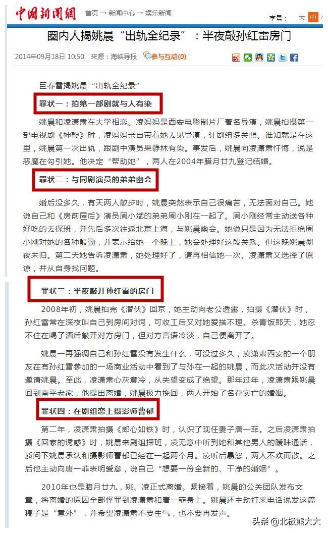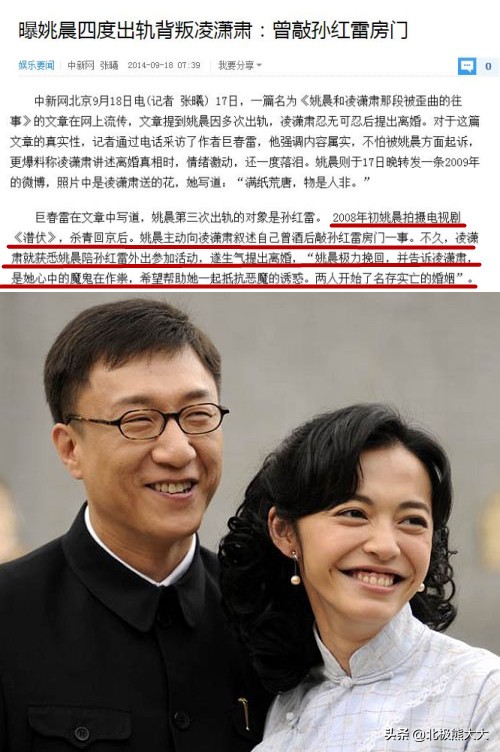 据了解,和凌潇肃在一起之后,姚晨曾四次出轨,前三次,凌潇肃都选择了原谅。