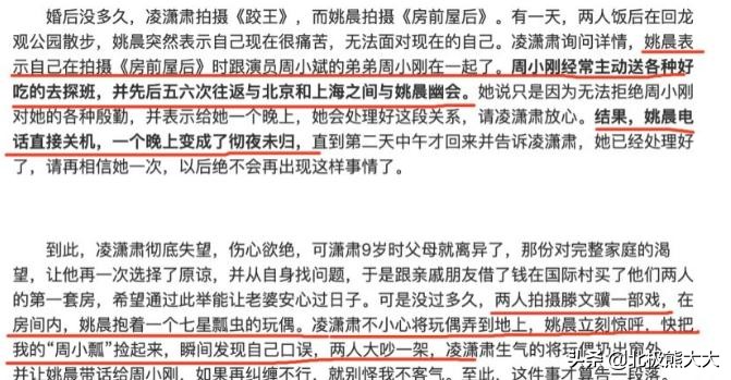 当时,凌潇肃正在拍摄《跤王》,对于妻子姚晨和周小刚的绯闻也略有耳闻,但一直没当回事。