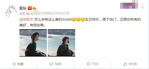 翻翻袁弘以往的微博,就可以看出,两人出行,张歆艺负责出镜,袁弘负责拍她。
