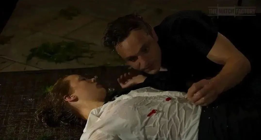 突然咖啡馆里的鱼缸破裂了,两个人摔倒在地上,温蒂妮还被玻璃割伤。