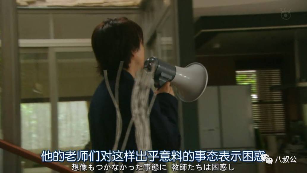 接着这一段非常经典,吉本老师拿出扩音器,开始播报一条“新闻”,简直就是茂之未来人生的预见