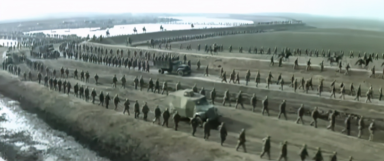 林彪怎么出场的?第二集一开始,是车马扬尘的行军,