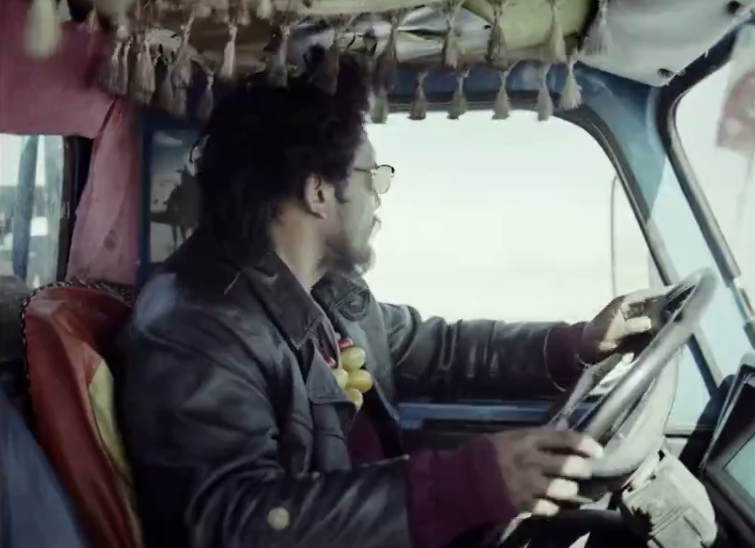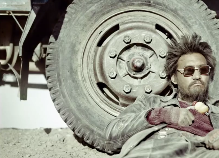 而相对“复仇者”金巴,片中的“卡车司机”金巴无疑是现代生活的一个缩影。他穿着皮衣、牛仔裤,开着现代化的卡车,听着外国歌曲,能够熟练说出啤酒的品牌。