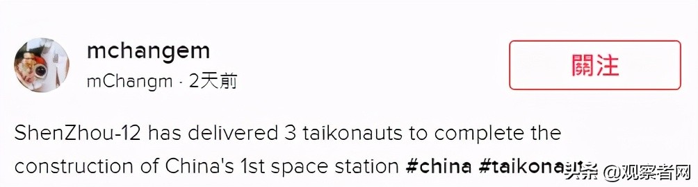 这名tiktoker6月19号感慨,“是时候学中文了。中国空间站的控制系统全是中文写的。gravity(地心引力)这部电影已经变成了reality(现实)。”