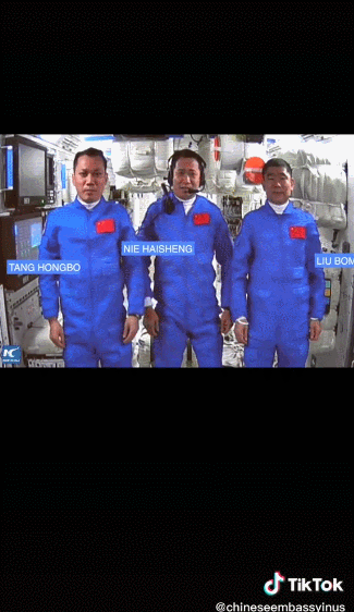 " 2021年,航天员聂海胜、刘伯明、汤洪波奉命出征,并成功进入中国人自己的空间站,tiktok立即“同步直播”了相关盛况。