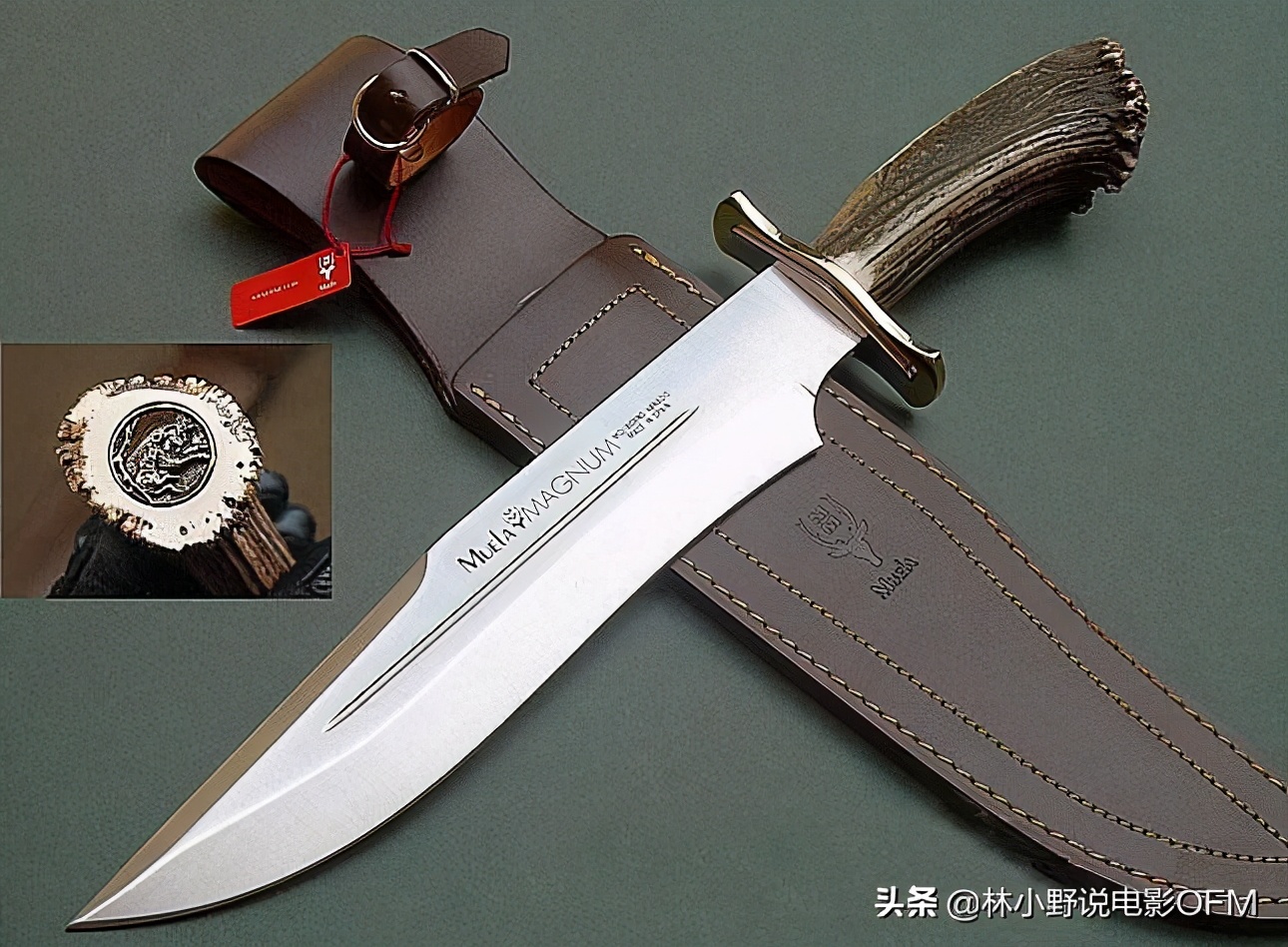 警长威尔·蒂斯尔从兰博后腰摸出这把刀,是整部电影的矛盾激化点,以点带面,展开故事情节(影片9分半钟才出现,节奏够慢的)。