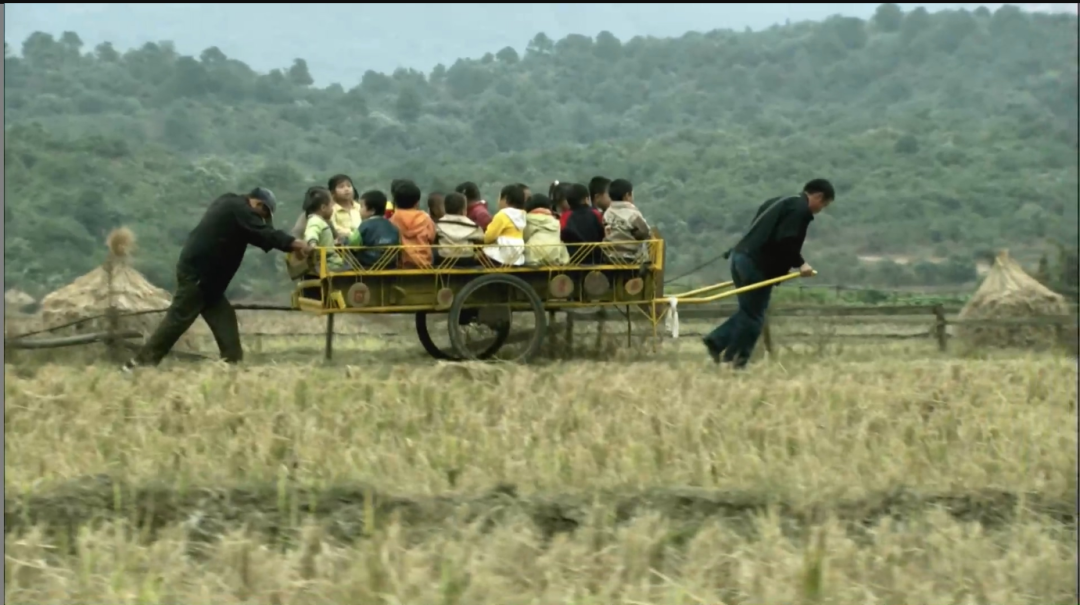 男主亲自拉车送孩子们回家,可有两个学生,他始终放心不下。