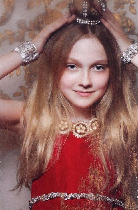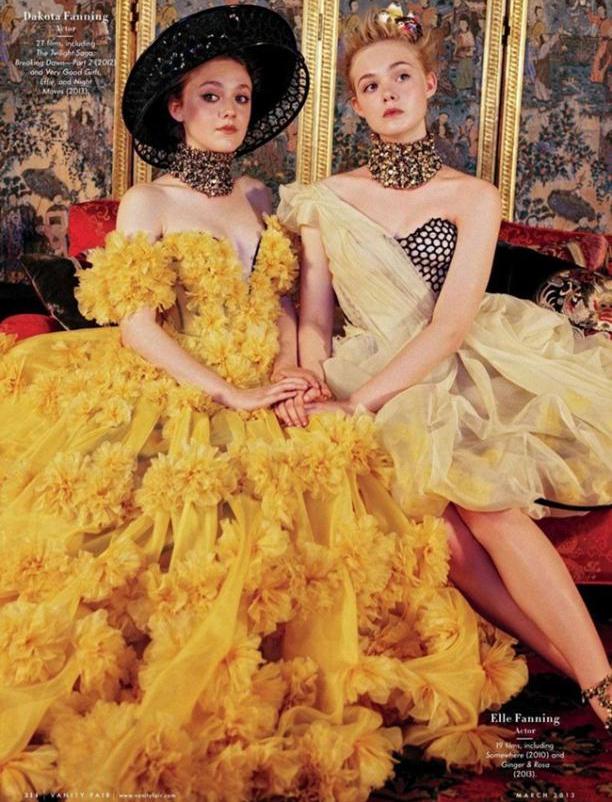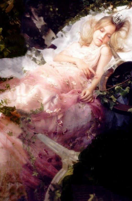 特别是2009年《名利场》二月刊的照片,达科塔扮成睡美人。她的手指被纺锤扎破了,安静地躺在那里,就像油画里的童话公主。