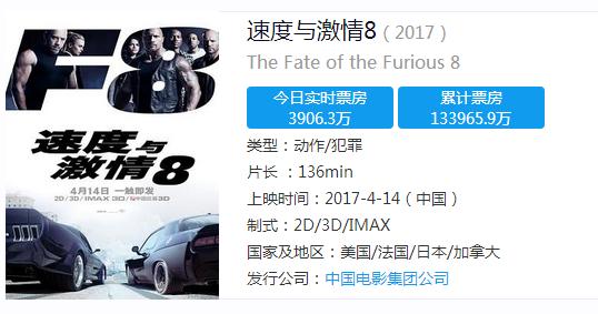 现在最火的电影,绝对要数《速度与激情8》了,不仅上映当天破了内地午夜场的记录,截止到目前为止,票房已经13亿多了。