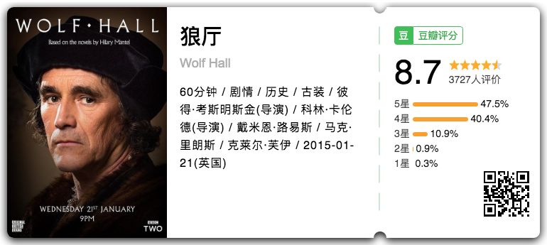 金球奖最佳迷你剧《狼厅》也是以亨利八世为背景创作