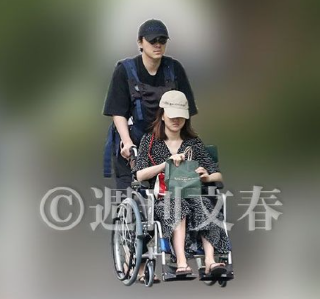 前田脚受伤疗养时,胜地抱着孩子推着轮椅去接她的照片(这到底是怎么拍到的!),