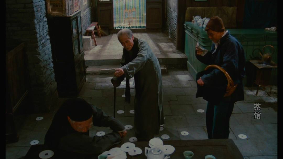 这档口,庞太监和刘麻子进行交易,庞太监的手下宋恩子和吴祥子,盯着茶馆里每一个人的举动,茶客们感觉事态不妙,一个个往外溜。