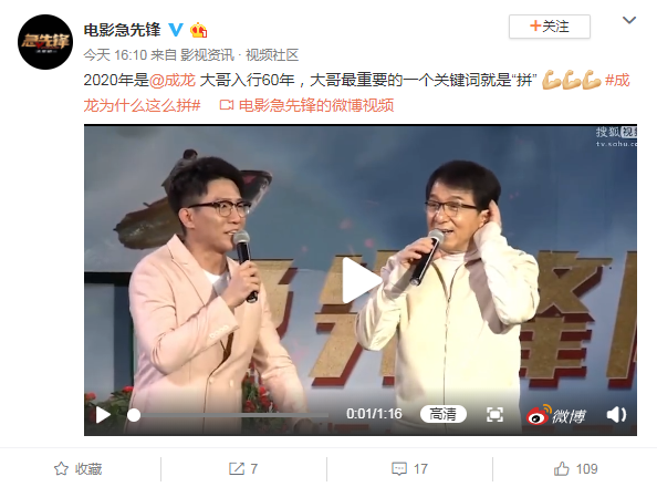 另一方面是因为观众希望他这么做,希望看到他完成惊险刺激的动作,因为这才是成龙电影。字里行间,透出的是四个字"实力宠粉"。