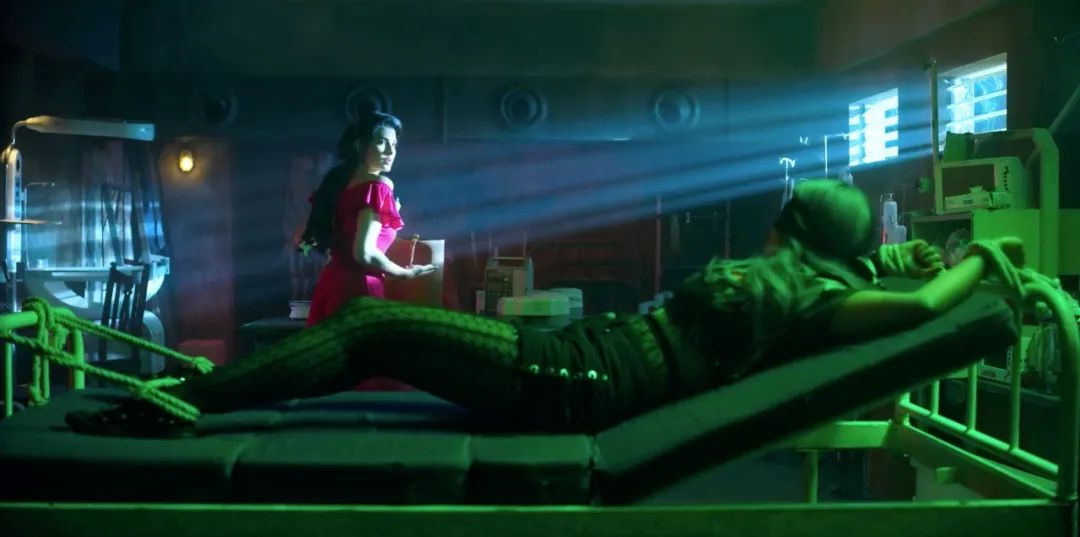走投无路的杰奎琳听取了律师的建议,也难为了娇滴滴的美女,干起了绑架这种行当。最终,她将邻居家怀孕的女儿绑架到丈夫诊所的地下室,这个地下室简直是赛博朋克,灯光氛围做的真棒!