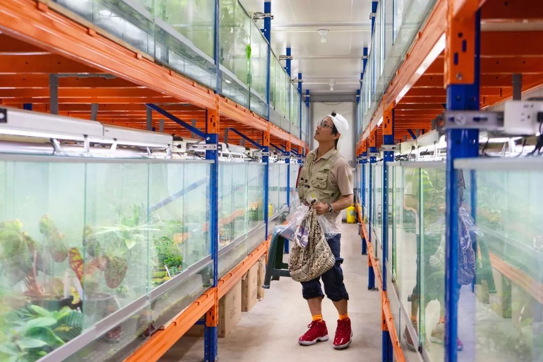 每年,他至少有100天独自在森林里,负责采集濒危植物,带回保种中心培育,工作的第一年,阿介就采集了1500种濒危的植物,制作了15000份标本,成为台湾采集海外标本最多的人。