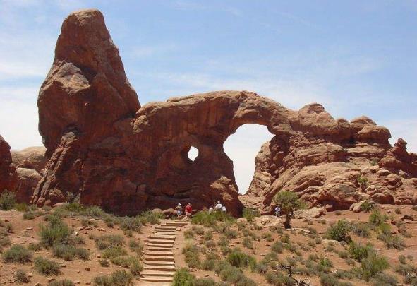 令人难以置信的是,形成这些千奇百怪的岩石景观的力量竟然是看似柔弱的水:在锡安国家公园,维琴河从坚固的沙岩中一路穿过,形成一道深邃的峡谷;在拱石国家公园,风霜雨雪经年累月地侵蚀坚硬的沙岩,造就了形态奇特的天然拱石;在大峡谷国家公园,科罗拉多河河水就像一个天然的雕刻师,不知疲倦地在一层层沙岩岩层上蚀刻出大自然的杰作;在天然石桥国家公园,水流的侵蚀作用在沙岩中蚀刻出一座座天然石桥,成为公园的标志。