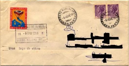 从玫瑰岛寄来的信,信封上盖着玫瑰岛邮票和邮戳,是浪漫的象征。