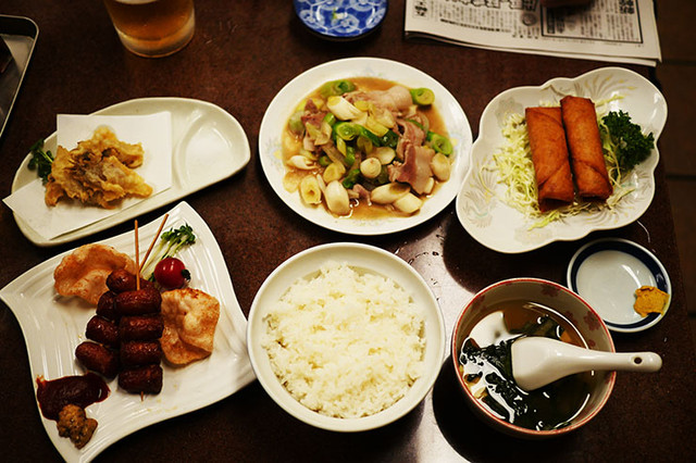 这家主打中华料理的居酒屋有点“奇怪”,从中午营业开始到晚上都紧关着门,从外面完全看不出里面是什么状况;结果一拉开门几乎客满,用“人声鼎沸”来形容绝不夸张;而且里面都是醉醺醺的欧吉桑,跟电视里演的如出一辙。