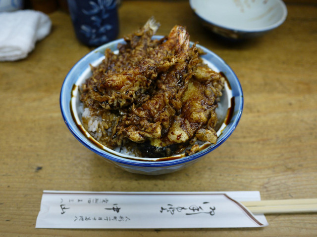 这家名物要数黑天妇罗盖饭,天妇罗本就是日本的特色,这款黑天妇罗就绝对堪称是特色中的特色!价格还很亲民呢,黑天丼只要1080日元。