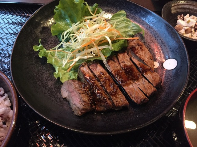 五郎点食的是店里的招牌“特别友风烧”,其实就是蒜味葱爆猪肉,一上来味道就极其诱人,“兹拉兹拉”的铁板声更是加剧了食欲。还有猪肉酱汤、火腿土豆沙拉、友风铁板汉堡、炸猪排套餐都相当推荐。小店味道不错,但是价钱感觉偏贵,量也比想象中的小。