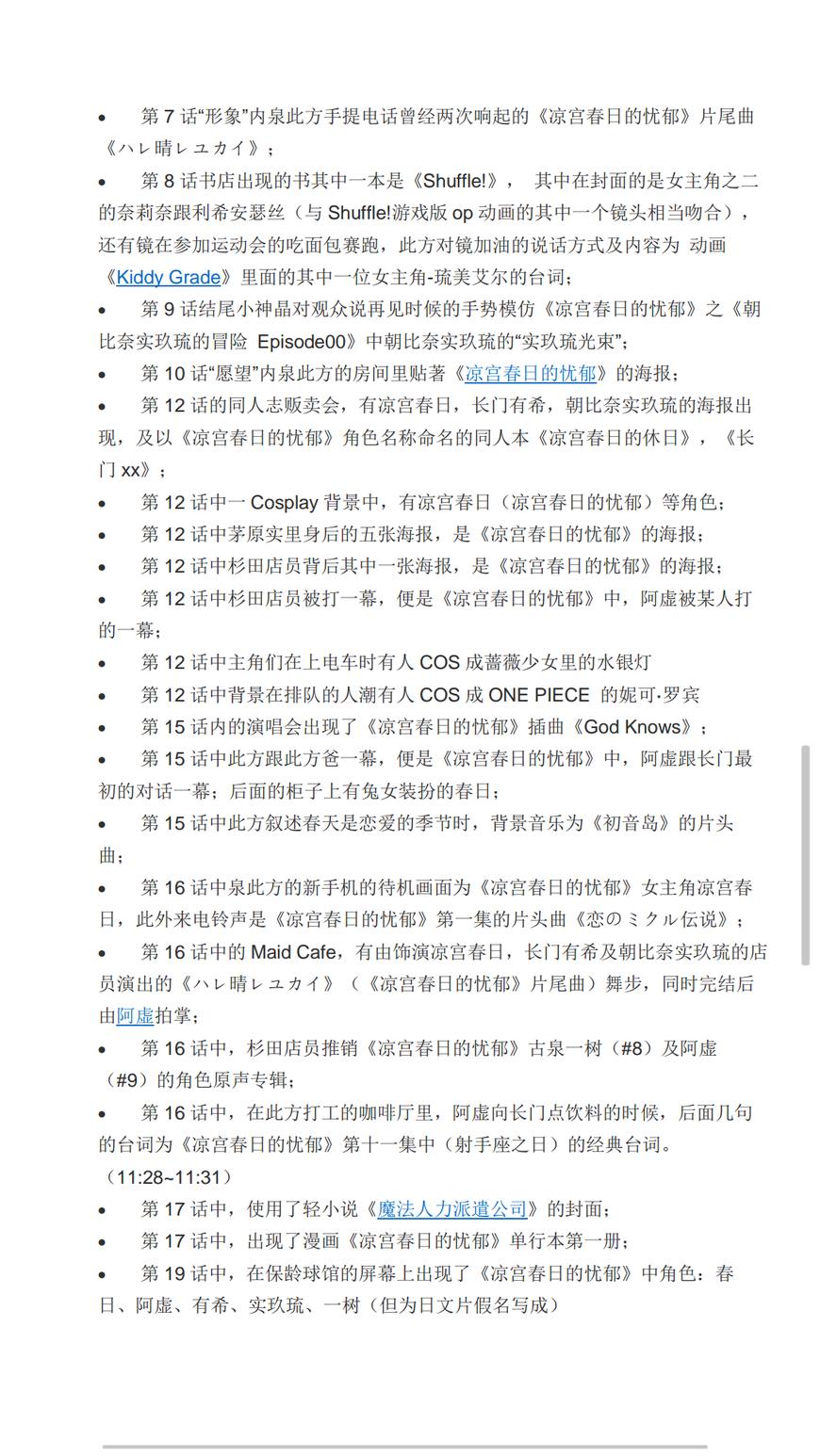 动画的最后一集此方泉她们跳的舞蹈为op中所跳的舞蹈,实现首尾呼应。