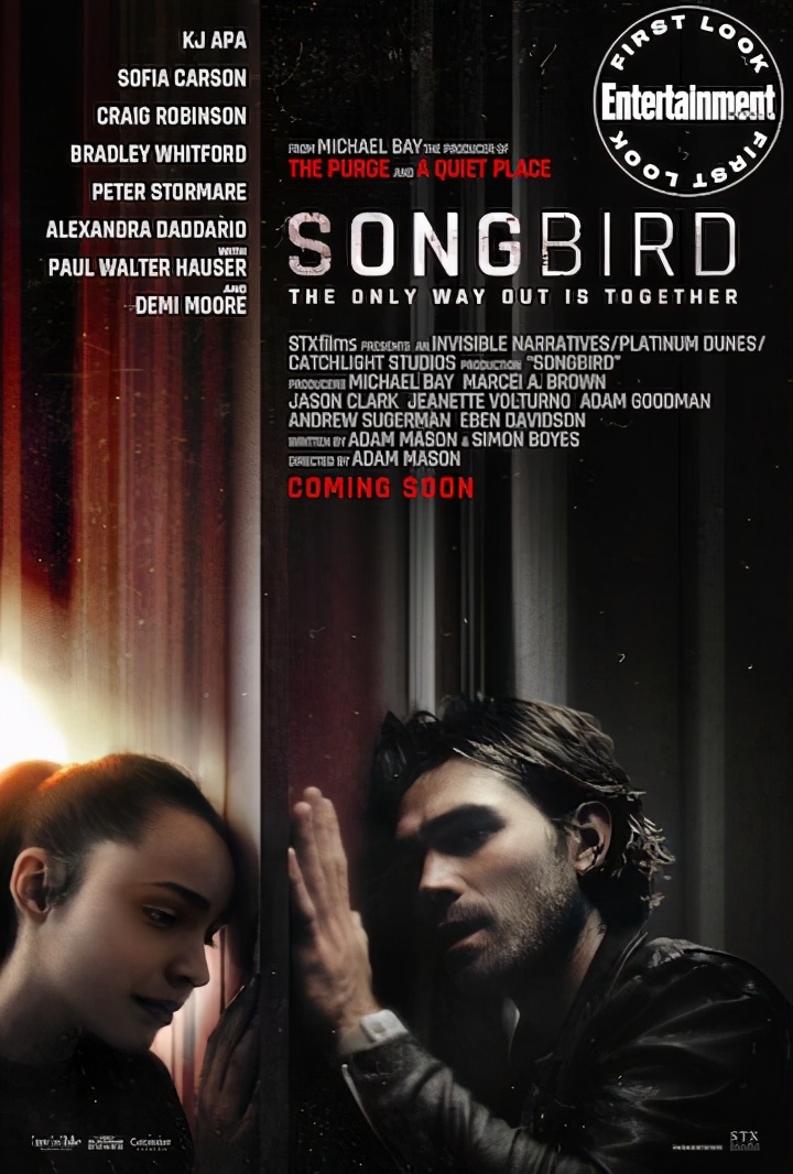 就这样,曼森和鲍伊在封城的第一个周六早晨,拼出一份长达 12 页的”战斗宣言“,内容包含《songbird》剧情架构,以及他们将如何在受限于疫情的状况下完成目标。然后曼森将这份计划写成一封标题为”crazy idea!“ 的 e-mail,寄给制片亚当古德曼 (adam goodman),隔天他不但接到古德曼来电表示十分愿意加入,连知名监制麦可贝也兴趣满满。
