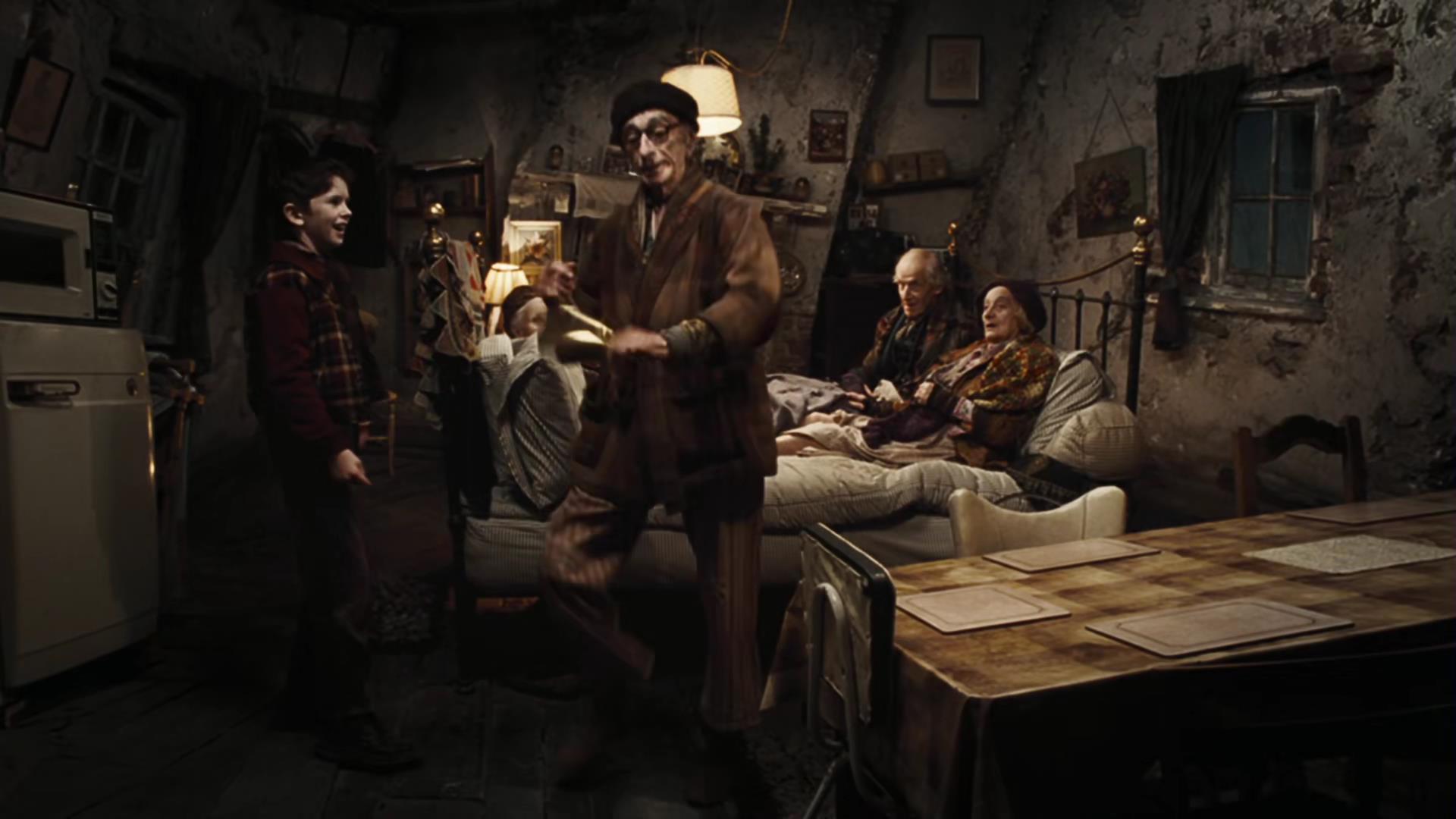 但是这样一个贫困的家庭,查理爸爸却因工厂升级使用机器而解雇工人而失业。回到家后他极力在家人面前掩饰悲伤,和妻子一起对儿子说了善良的谎言:爸爸只是放假。但是当爸爸妈妈单独在一起时,爸爸就再也隐藏不住这说不出却又难忍的痛。妈妈的回答就像是阴天的夜晚出现了微弱却坚定的星光。这是爱情应有的模样:我们现在即使很困难,但是我们依旧可以好好生活,而且我们都要相信未来我们会变得更好。当贫困来临,我们就把汤稀释一点。