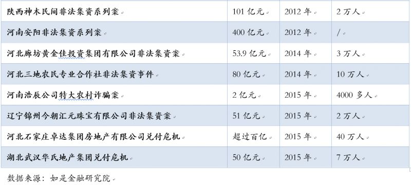 2016年初,一场起于中晋系美女高管在网上炫富的照片,最终牵涉出庞大的中晋非法集资系列案。通过以“中晋合伙人计划”的名义变相承诺高额年化收益,中晋系向不特定公众大肆非法吸收资金,诈骗金额高达人民币400余亿元。其合伙人的种类名目繁多,包括一般合伙人、高级合伙人、明星合伙人、超级合伙人、战略合伙人,以及永久合伙人,并吸引了九球天后潘晓婷等明星加入;其中,高级、永久、超级合伙人各自的出资规模分别为1亿元。这些资金除了用于支付员工佣金外,还用于虚增业务收入,额外支付贸易补贴及奖励,同时个人挥霍近5亿元。