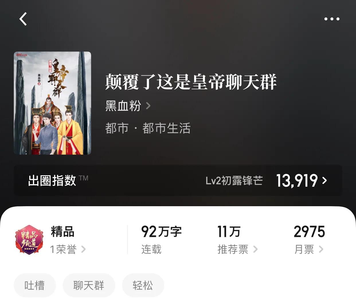 1,颠覆了这是皇帝聊天群。作者:黑血粉。