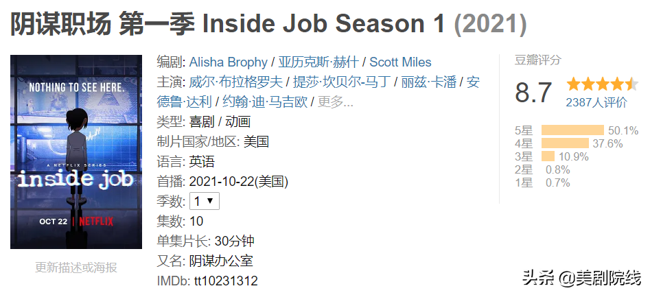 总的来说,《阴谋职场》一部是比较有看点的美漫,讽刺程度不亚于《瑞克和莫蒂》。