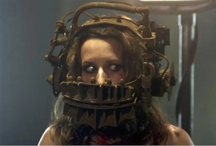 有学者认为,封闭空间中的“封闭”是指物理空间的封闭性,或者是指视觉上的封闭性。在封闭空间中,人性的高尚和卑劣被无限的放大。《电锯惊魂1》的场景在一间废弃的卫生间中,昏暗的灯光、布满污渍的浴缸、只闻其声的“竖锯”、满地是血的地板、趴在密室中间的尸体……整部影片基调阴暗沉郁,给人一种阴森压抑的感觉。