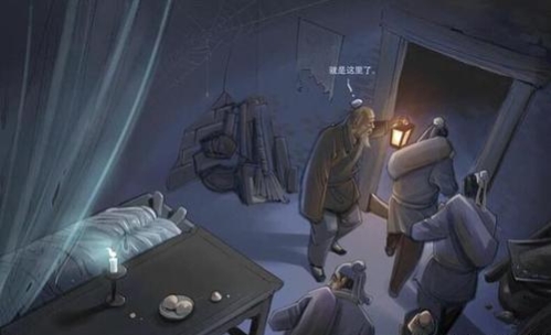 车夫四人抬脚进入屋内,见桌案上点了盏昏暗的油灯,桌案之后挂的则是灵床上的帷帐,一床纸被盖在了死者的身上。再看卧房,里屋有张相连着的大通铺。