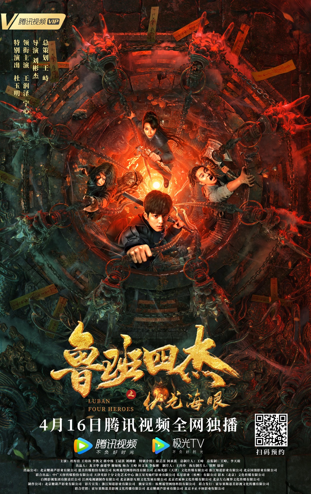 由王润泽、宁心主演,杜玉明特别出演的冒险动作电影《鲁班四杰之伏龙海眼》将于4月16日在腾讯视频独家播出,影片取材于广为流传的“北新桥锁龙井”传说,姚广孝锁龙百年后,锁龙井再生异象,鲁班后人集结深入千年古井下的奇幻地宫,揭秘诡异传说背后的真相