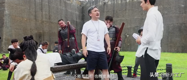 在剧情中他被罚以杖刑,在现场他已经躺好在板子上了,准备拍摄,而导演恰恰好站在他的身边,表示“不能是假打,得是真打”,而后特别讲到“筋得出来”。