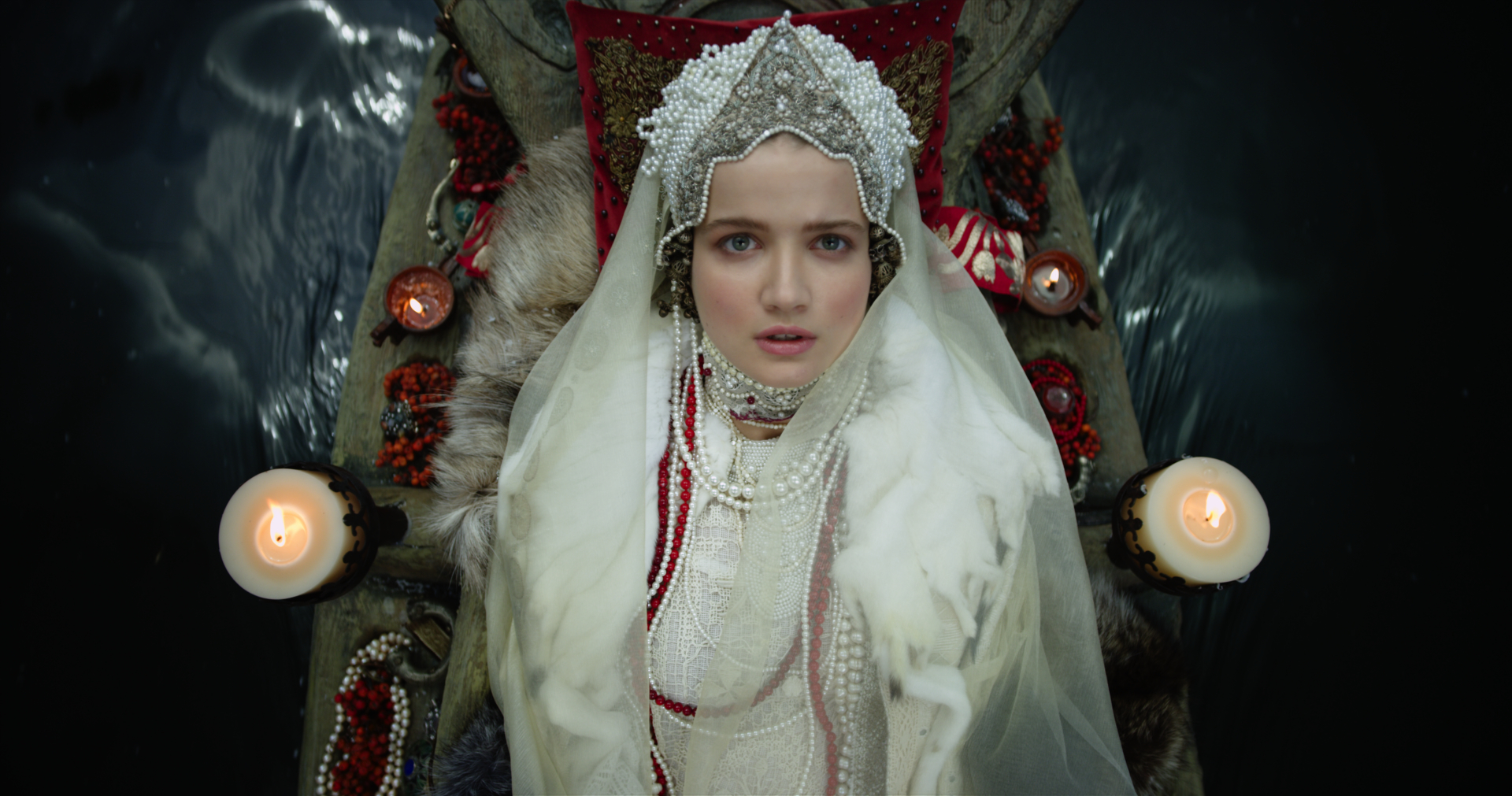 "影片开幕即震撼人心。一种强烈的宗教仪式感扑面而来。人们吟唱着压抑凝重的“龙之歌”,召唤恶龙出现。多位少女白裙裹身,赤脚踏雪,带着恐惧与绝望走进河中小舟,为求得部落平安,成为恶龙的祭品。而一个少女的殒命,让爱她的情人将恶龙杀于巢穴成为屠龙者,尘世再无龙之侵扰,人们过上了平安的生活。这个简短的前奏段落,因有着古典审美特质的场景与构图,方方面面都显示出创作者的用心。