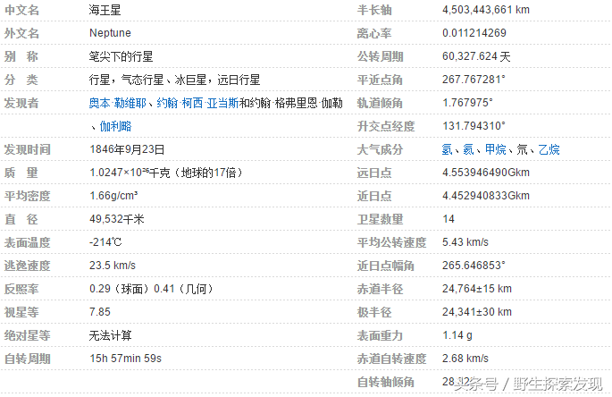 海王星相关参数: