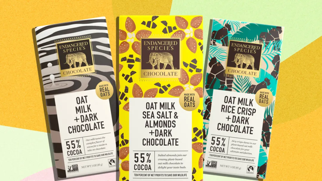 endangered species推出的纯燕麦牛奶巧克力棒,由纯正燕麦和55%的可可制成,不含素食和麸质,也不含任何化学添加成分。