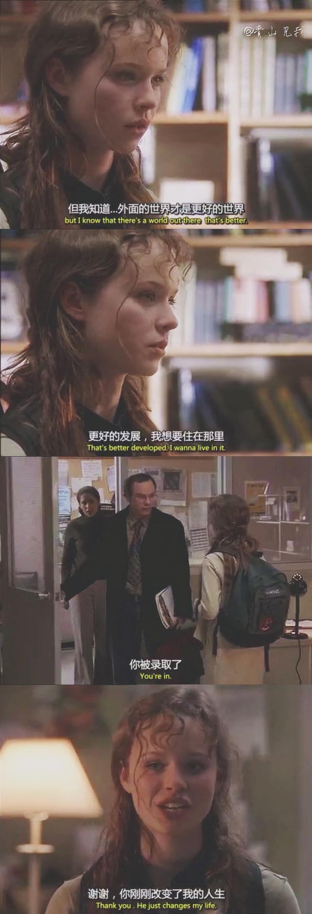 贫穷可怕吗?真的太可怕了,它打击的是一个女孩继续向上攀爬的勇气与决心。好在丽兹得到眷顾,成功拿到哈佛奖学金,可以进入哈佛同更多优秀的人一起学习。