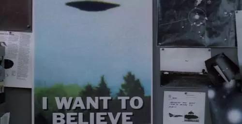剧中曾经最有名的“i want to believe”飞碟海报,也原封不动出现。