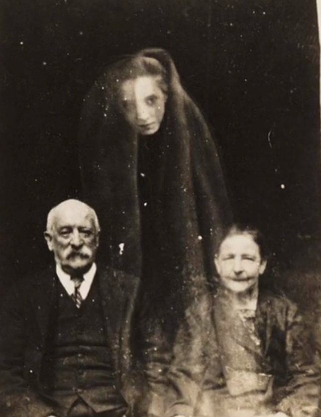 泛黄的旧照片里一对白发苍苍的老夫妇对着镜头正襟危坐,但往上看的话却发现还有一个披着薄纱的女子,也紧紧地盯着镜头,这张照片是出自于1922年的伦敦,在那个没有修片软件的年代,难不成真的拍到了超自然现象吗?