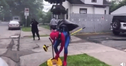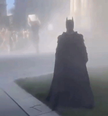 抗议市民变身“蝙蝠侠”,热心邻居“蜘蛛侠”打扫战场。