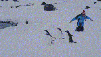 片中的赵又廷跟现实拍摄状态一样,原本在雪地里欢蹦乱跳,逗企鹅撩海豹。