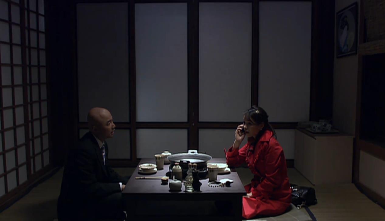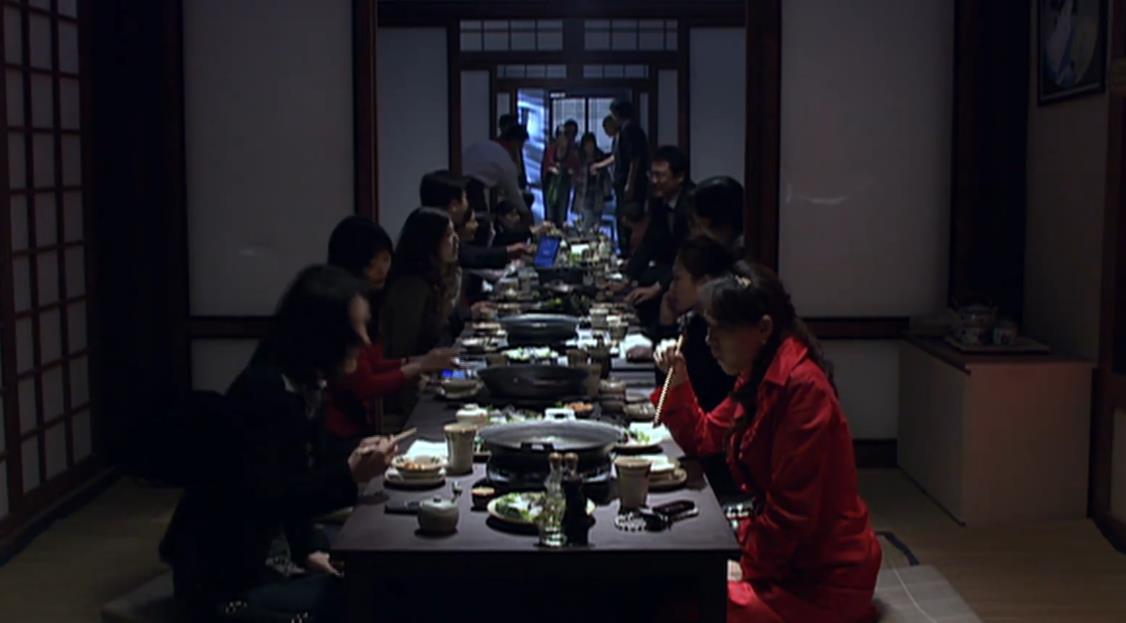 戏中,由于伊能静饰演的小富婆是一种工作狂的人设,所以在和徐峥吃饭的时候,就不停地打电话。而就在她意识到要关机的时候,碰巧遇到了同样在餐厅吃饭的一位朋友,就这样一来二去,导致了二人的约会,成了三十人的聚会现场。