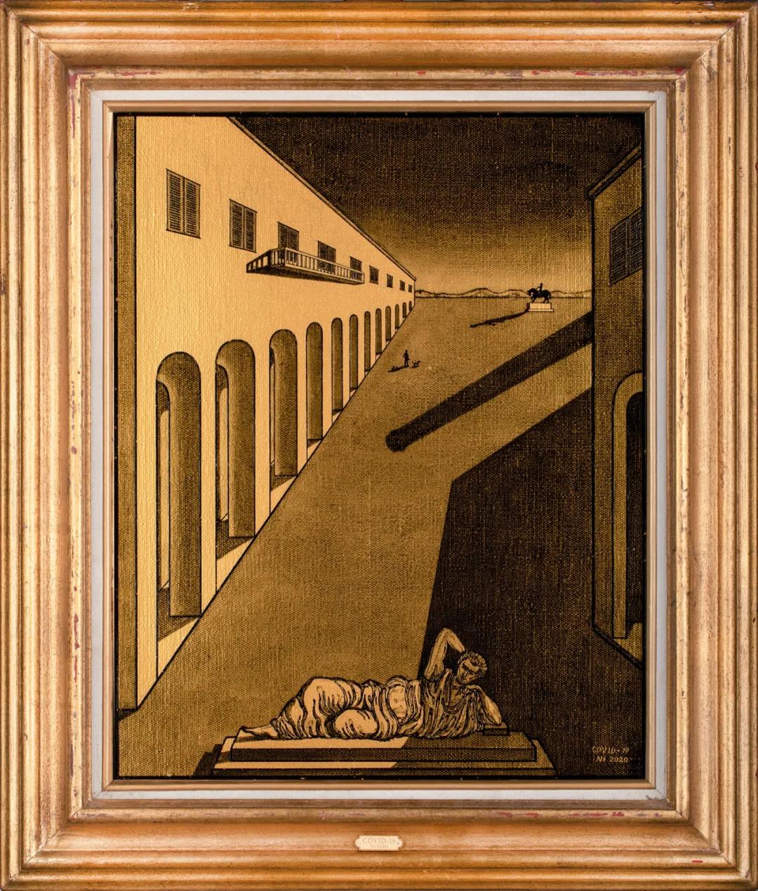 这幅《古代卧室》中,他将15世纪fra angelico绘画中的卧室场景,与当代艺术家翠西·艾敏(tracy emin)那张著名的“床”相结合,用自己的绘画语言表达出来。画面中混乱的床,让人联想到因疫情被隔离的人们,威士忌酒瓶、烟头、纸巾、书、眼镜、袜子……全部都堆在床边,仿佛窥到这个人一天的生活就在床上发生。