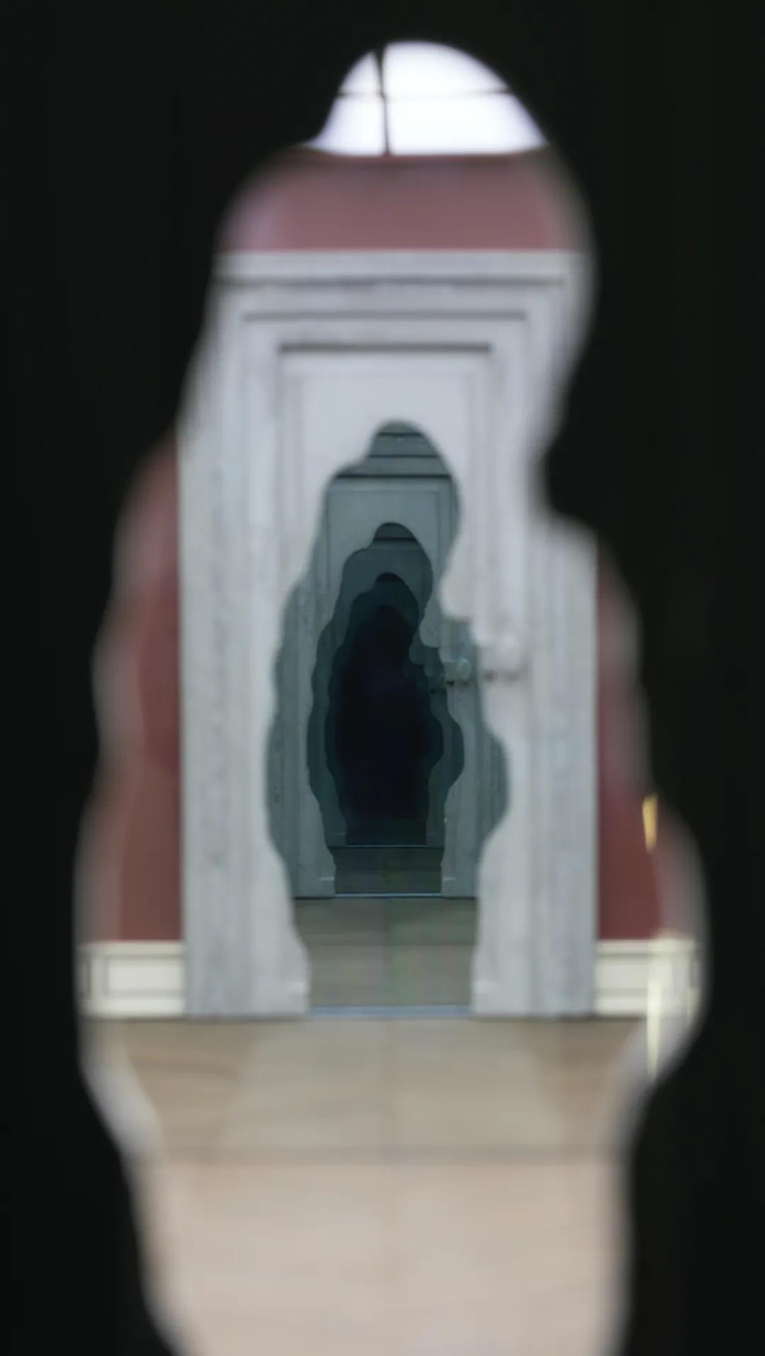 《无限的意外》,灵感来源于玛格丽特的著名绘画,倪有鱼用收来的一个二手木箱架为主体,在内部做了一个镜面灯光反射的博物馆空间。灯光打开后,门洞会一点一点的像一种透视感延续下去,无限重叠。